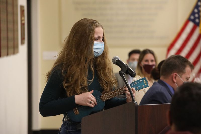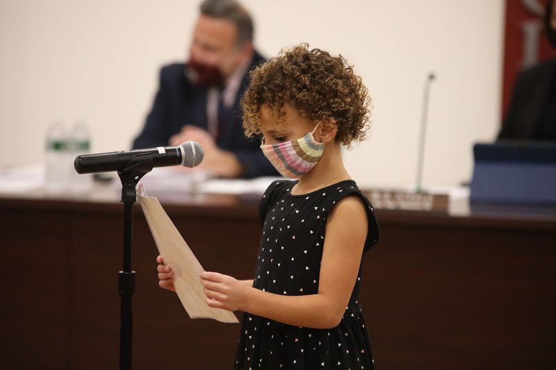 Oakwood student Remy Cohen presented a well-spoken reading to the Board of Education.