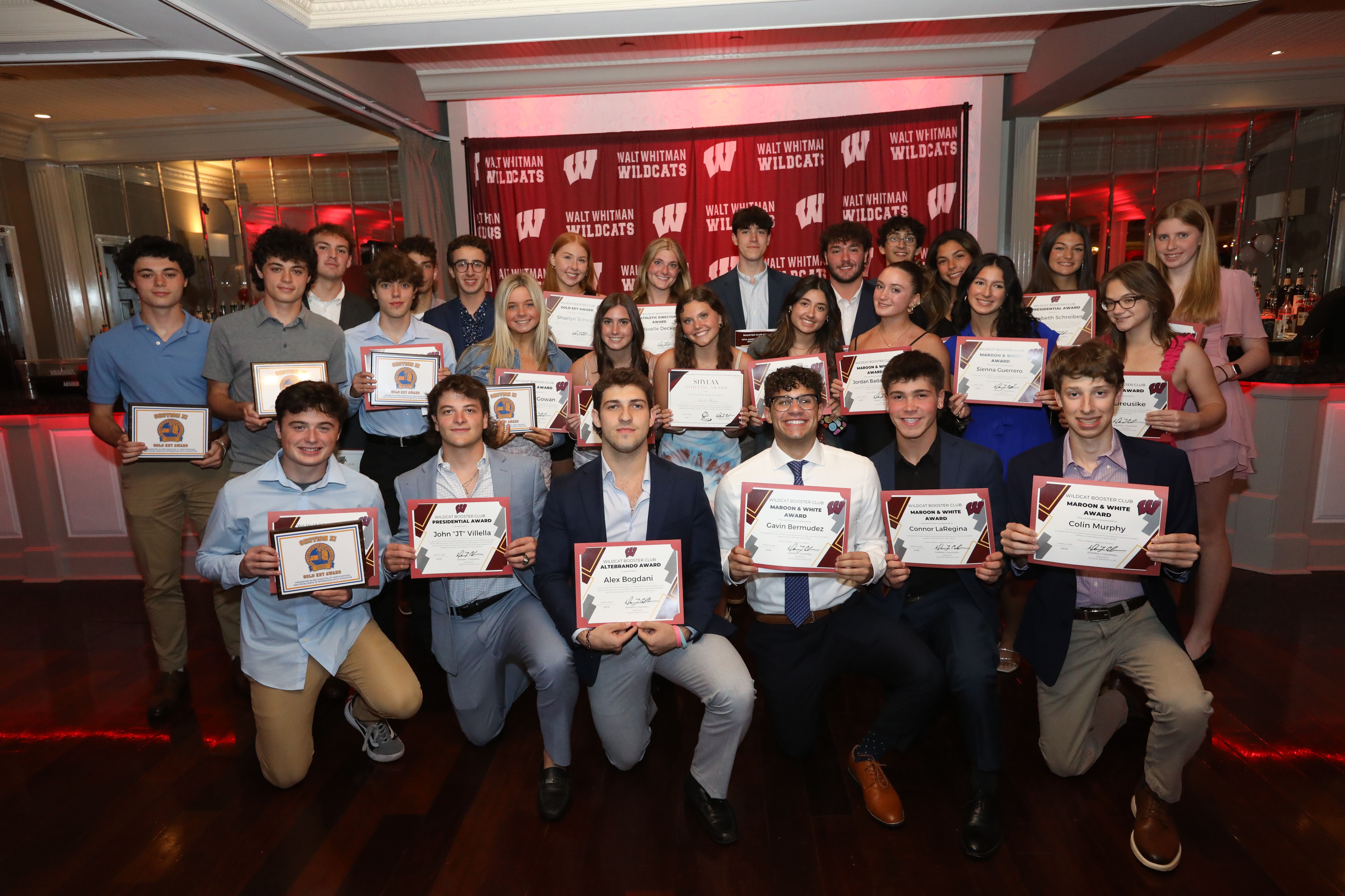 The 2023 Gold Key Awards and Wildcat Booster Club Scholarships were received by Whitman’s exceptional athletes recently with the addition of the 13th Annual Athletic Hall of Fame Induction at the Fox Hollow. The Gold Key Award is the highest honor in Section XI that an athlete can receive for sports participation. Recipients are determined by Section XI rules and are awarded to athletes who letter in eight varsity or junior varsity seasons in grades 10-12 throughout their Walt Whitman High School career.