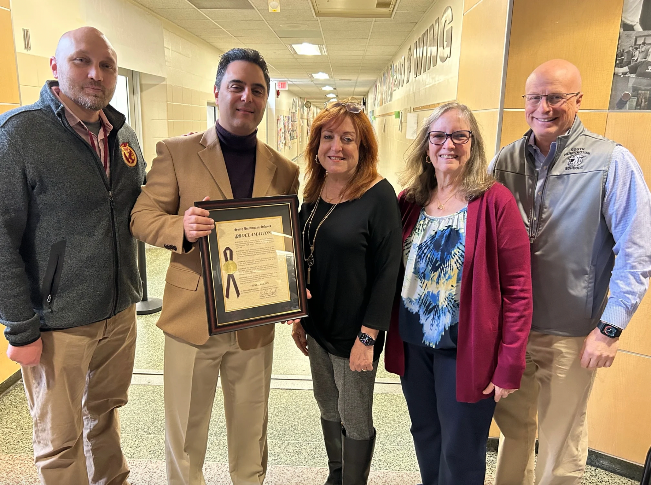 (left to right) Board of Education Trustee Fred Scragg, BOE President Nicholas Ciappetta, presented a proclamation to retired art teacher, Mrs. Vicki Dollin, along with BOE Vice-President Linda LaCara and Superintendent of Schools Dr. Vito D'Elia.
