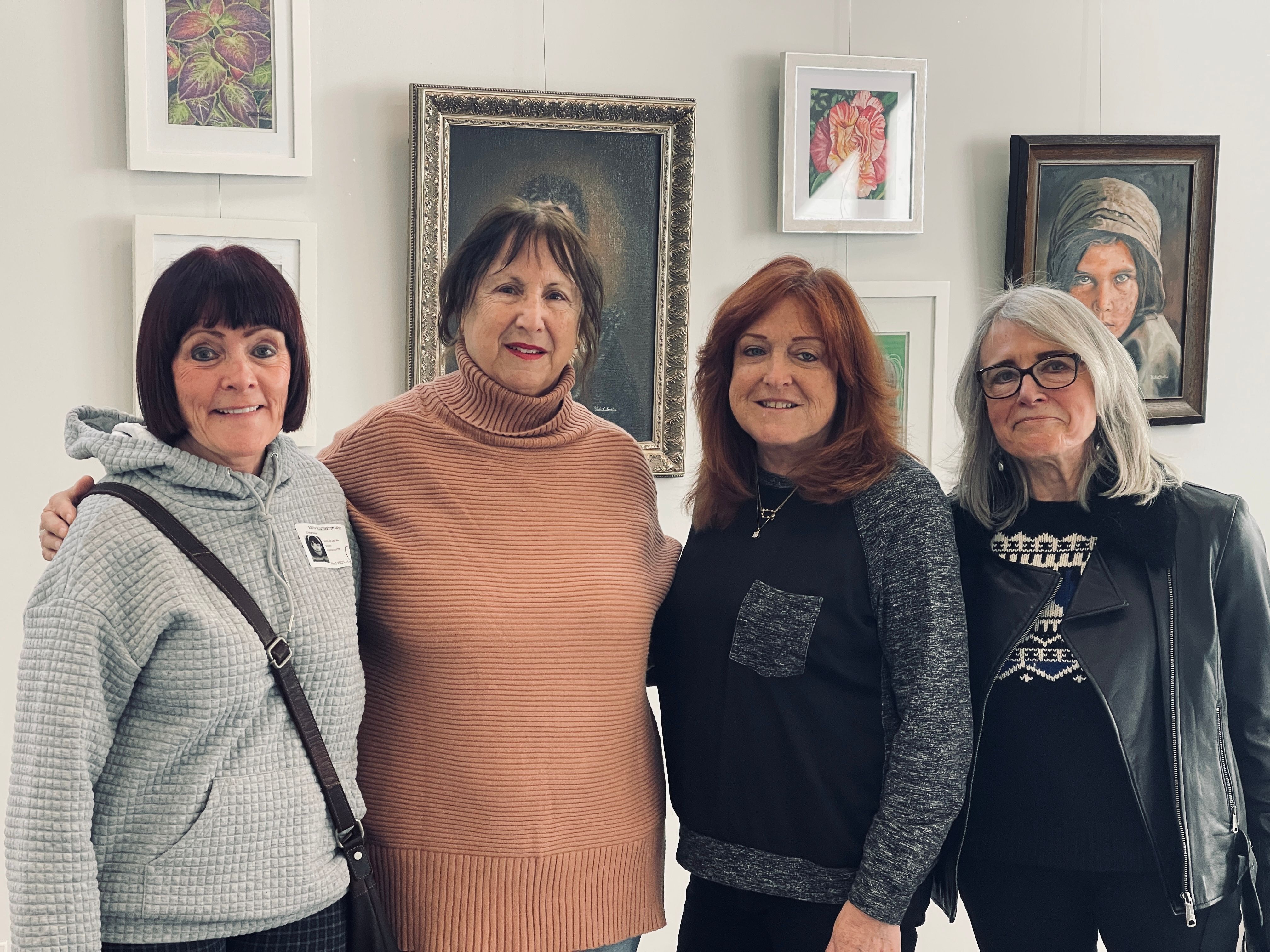 Five of South Huntington's retired art teachers were showcased at the gallery opening, including (left to right) Carol Davis, Verna Amakawa, Vicki Dollin, and Mary Ponte (Paula Beck not pictured).